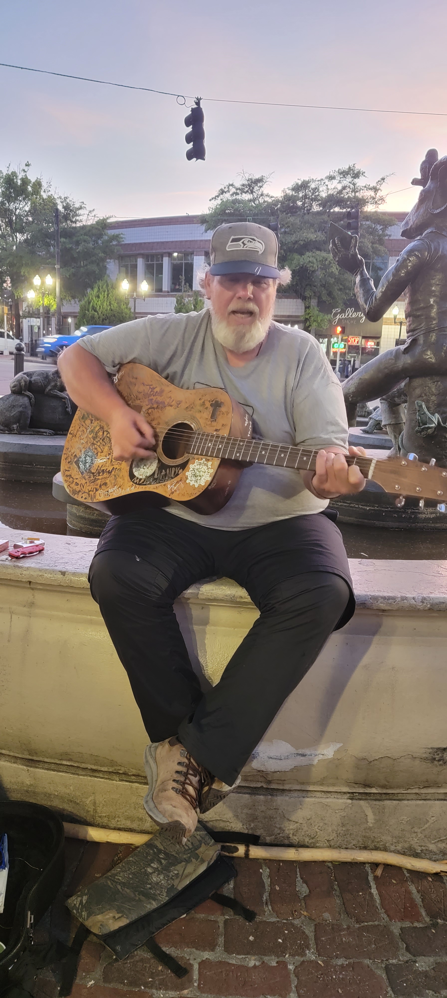 Both my husband and myself signed the guitar as requested and I snapped some photos with my phone to add to my street photography section of my website…. this was the one time I didn’t have my camera on me since it was date night. I plan to process these in black and white format before adding to my official site. Uncle Steve was thrilled for the attention. The guitarist, Rodney Winters was a bit more shy.