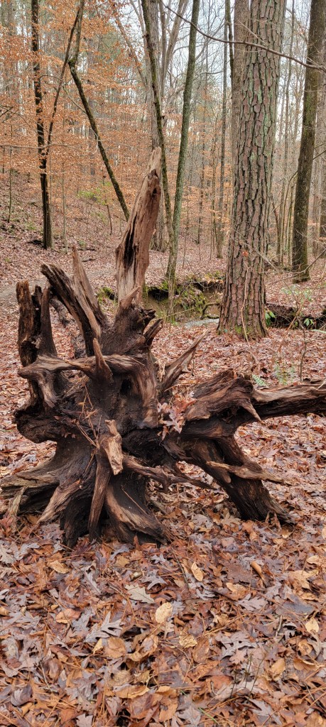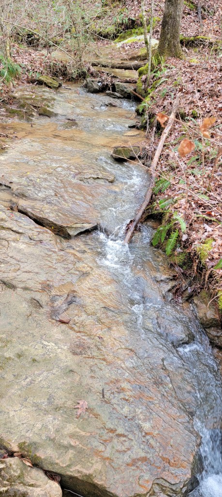 I was much in need of a rejuvenation of my body and soul which always happens when I can wander through God’s beautiful nature far away from the concerns of this insane world. Hiking over uneven mountainous terrain is a more healthy workout than walking on level paths and concrete walkways when one is able. Then there is the added pleasure of the soothing sound of babbling water in streams, birds foraging in the underbrush and the cool breeze rustling what’s left of the winter leaves in the trees.