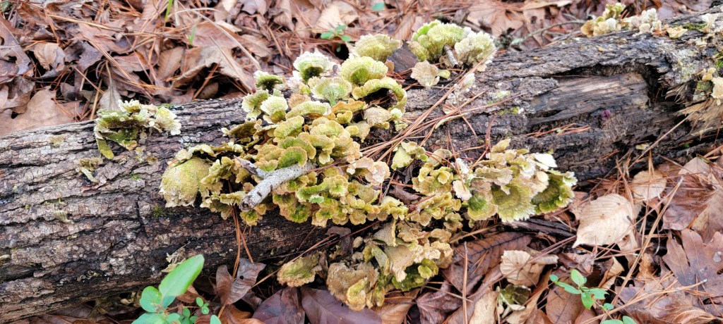 Another beautiful aspect of woodlands death is the amazing variety of fungi that spring forth from a dead tree. I’ve not encountered this particular variety before that I remember. It resembles turkey tail fungi but I have never seen this green coloring.