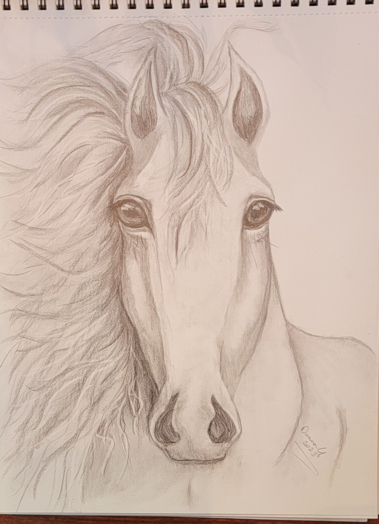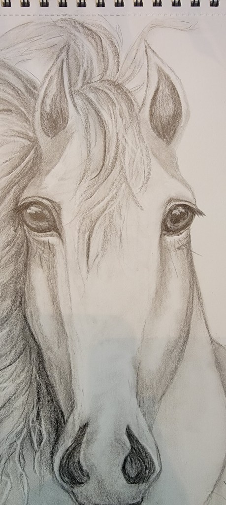 I’m still sketching when I can. I’ve completed several birds and decided to attempt another animal species. I’ve always had a fascination with horses my whole life. Being raised in the city, my dream of owning a horse didn’t happen until I was grown and bought a house and a few acres in a rural area. I’ve had the honor of owning four horses since then, all having passed away years ago. I still miss them too this day.